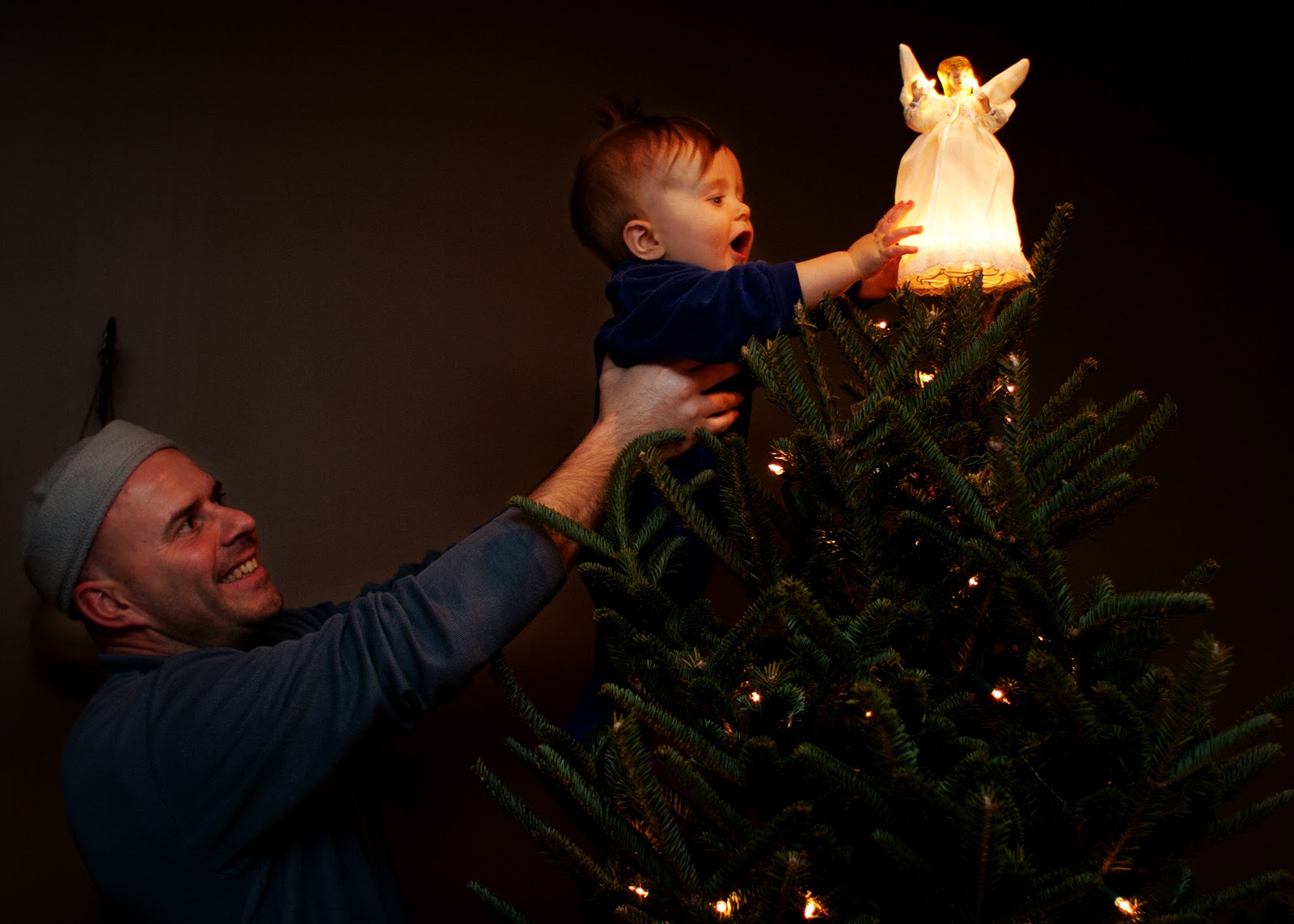 I really thought it was important that we all go get our Christmas tree as a family. I didn't want to exclude anyone. I'm not sure if that was the very smartest idea, but we did end up with a beautiful tree. We got everyone bundled up, trudged over to the tractor / wagon, rode out to the far end of the Christmas tree field, and set off to find the perfect tree. I very much underestimated the difficulty of holding on to a heavily bundled, super wiggly baby J. Stella was screaming from the time we got off the wagon. REALLY screaming. She wanted to be carried around, but I had Jeremy and John had a saw, and it was kind of a mess. Sylvia was great until we didn't agree to chop down the tree she picked out in the first 2 seconds, so it was all kind of a loud, wiggling, crazy little mess. Somehow we managed to look around through a few rows of trees, and Sylvia found new tree that she just loved. It wasn't quite as tall as we had in mind, and I'm not sure if the wiggling and screaming influenced our enthusiasm, but we all decided WE LOVED IT! "Let's get it and go!". Haha. But truly, Sylvie-girl picked out an absolutely perfect tree, and we have had fun putting on just a few decorations each night, starting with the lights, the angel, and lots and lots of sparkling, shiny red Christmas balls.